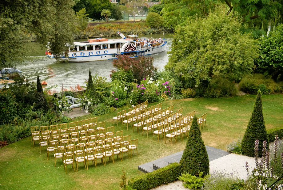 Our wedding will be celebrated across the garden, riverside domes, heated terrace, and garden rooms, each offering views of the river and spaces for guests to relax and enjoy the day.